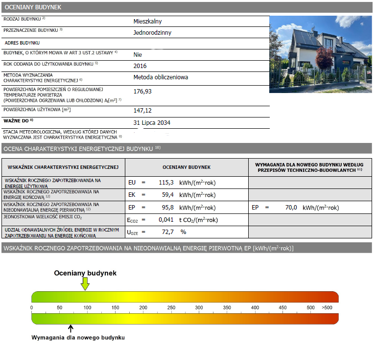 W ramach pracy wykonano świadectwo charakterystyki energetycznej domu z 2016 roku. Dom wyposażony w pompę ciepła i instalację fotowoltaiczną. Share